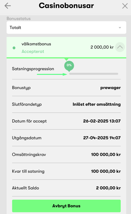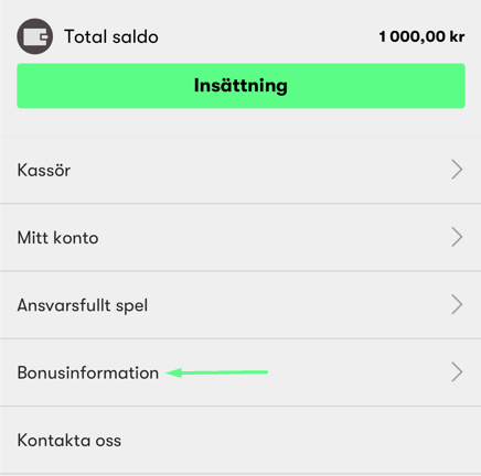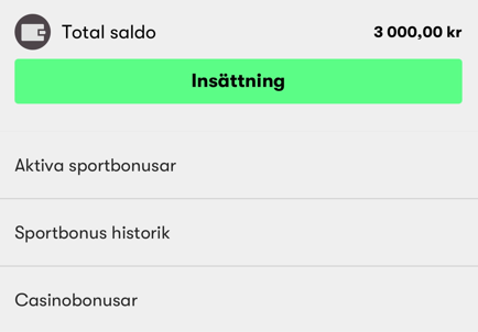 3. Klicka på "Aktiva sportbonusar" eller "Casinobonusar"