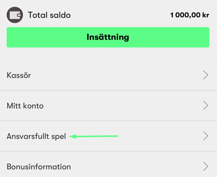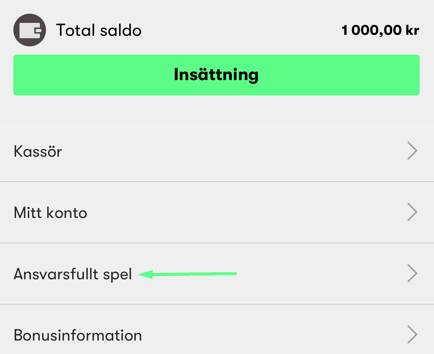 2. Gå till "Ansvarsfullt spel"