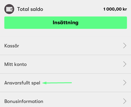 2. Gå till "Ansvarsfullt spelande"