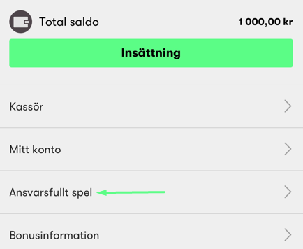 2. Gå till "Ansvarsfullt spel"