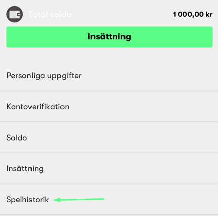 3. Välj "Spelhistorik"