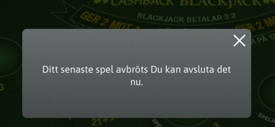 - Om du inte återansluter i tid fortsätter spelet och din insats förblir giltig – den utses till vinst eller förlust baserat på spelets utgång.
